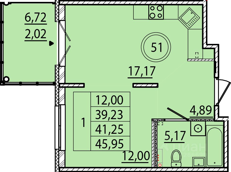 Площадь кухни17,2 м²