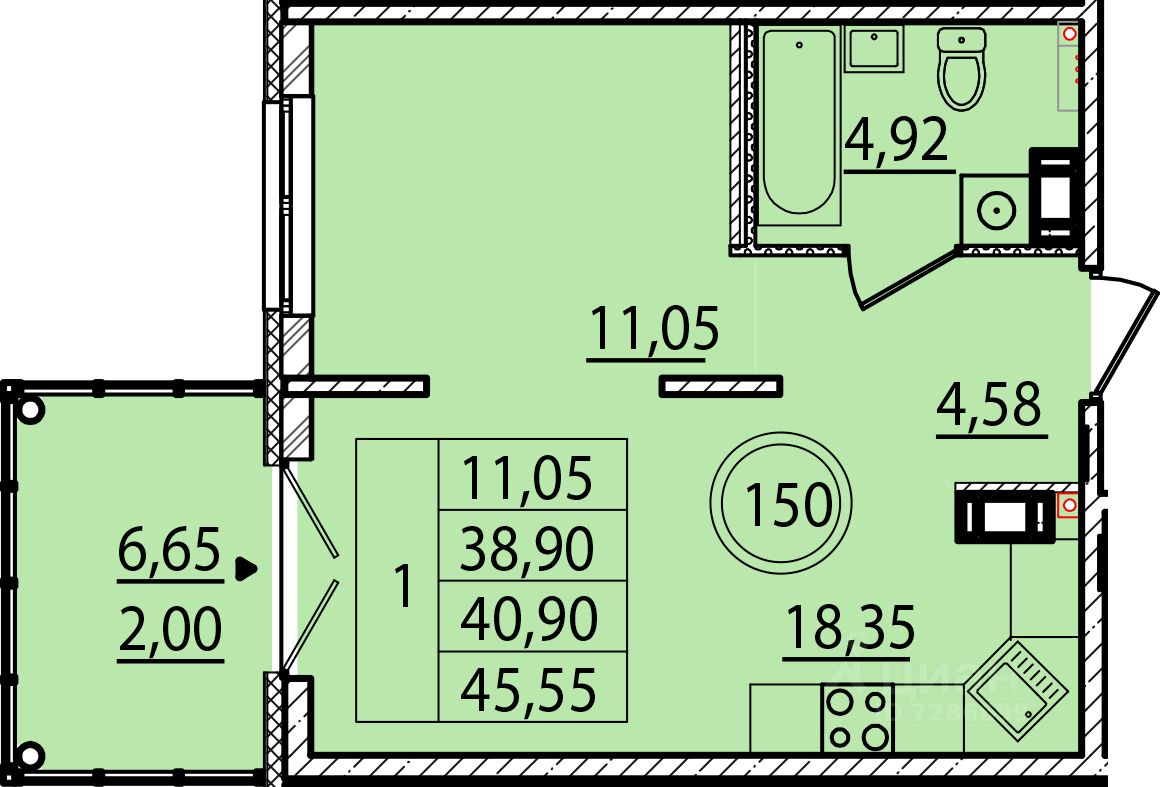 Общая площадь38,9 м²