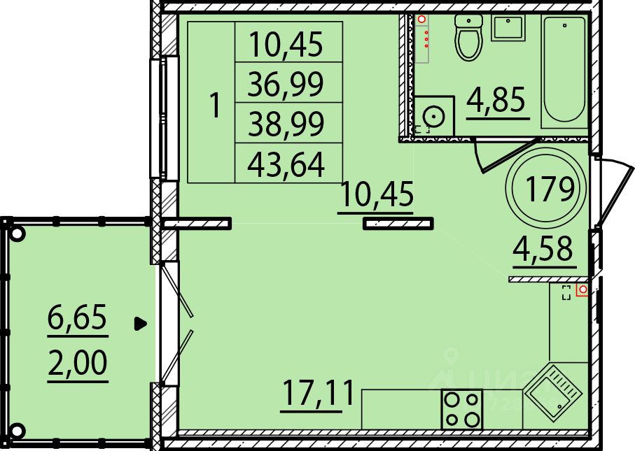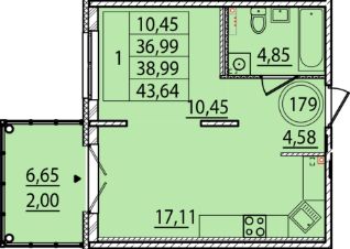 Общая площадь36,99 м²