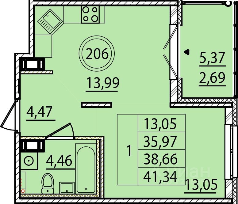 Общая площадь35,97 м²