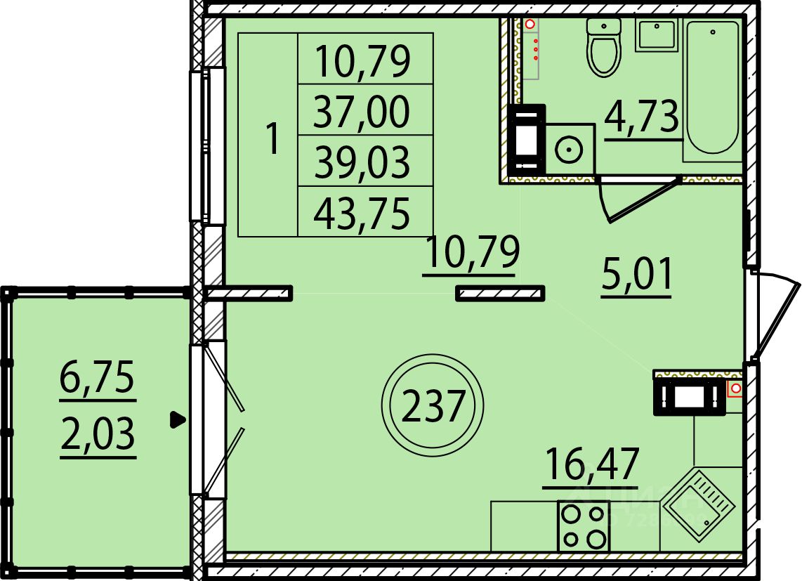 Общая площадь37 м²