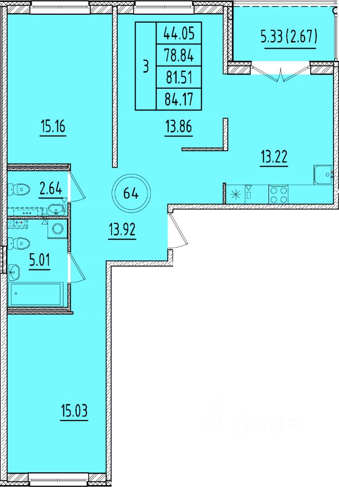 Общая площадь78,84 м²