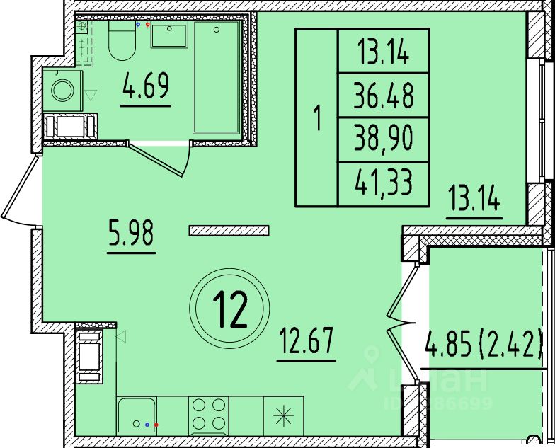 Площадь кухни12,7 м²