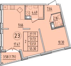 Общая площадь51,72 м²