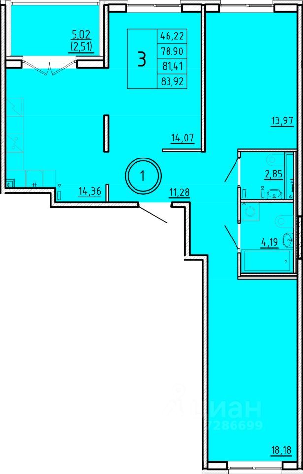 Общая площадь78,9 м²