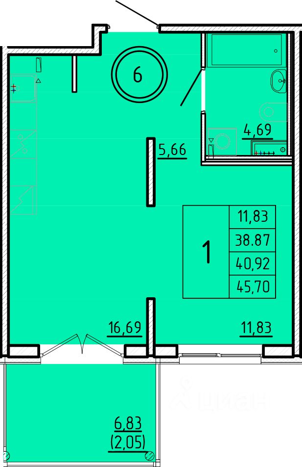 Общая площадь38,87 м²