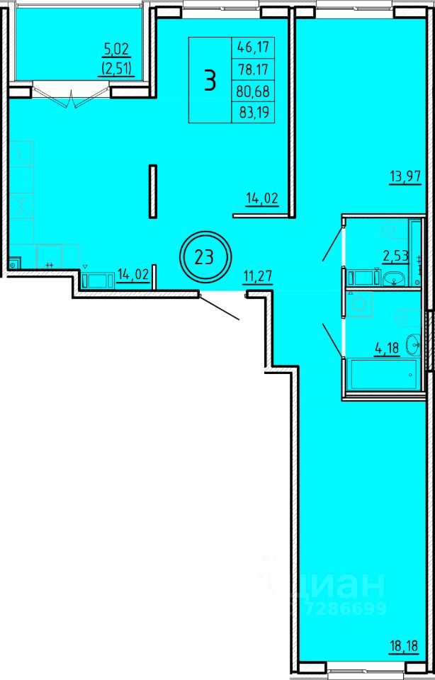 Общая площадь78,17 м²