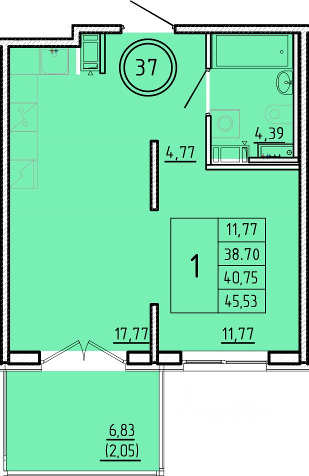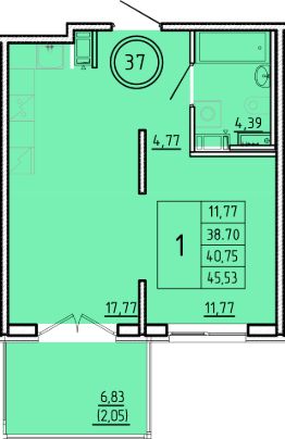 Общая площадь38,7 м²