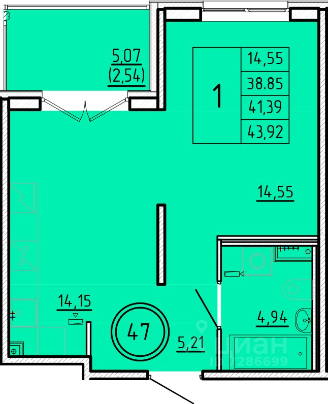 Жилая площадь14,6 м²
