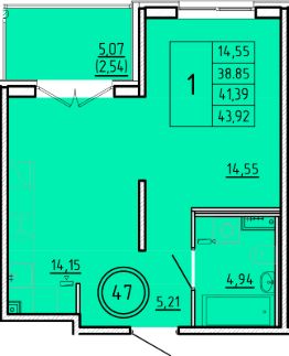 Общая площадь38,85 м²