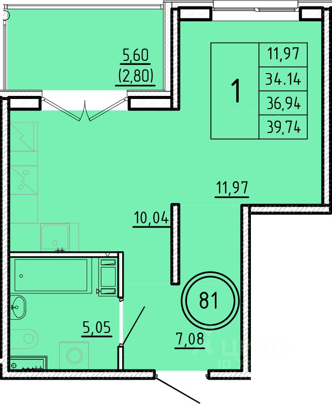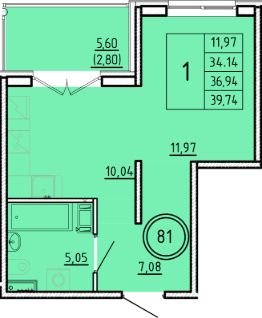 Общая площадь34,14 м²