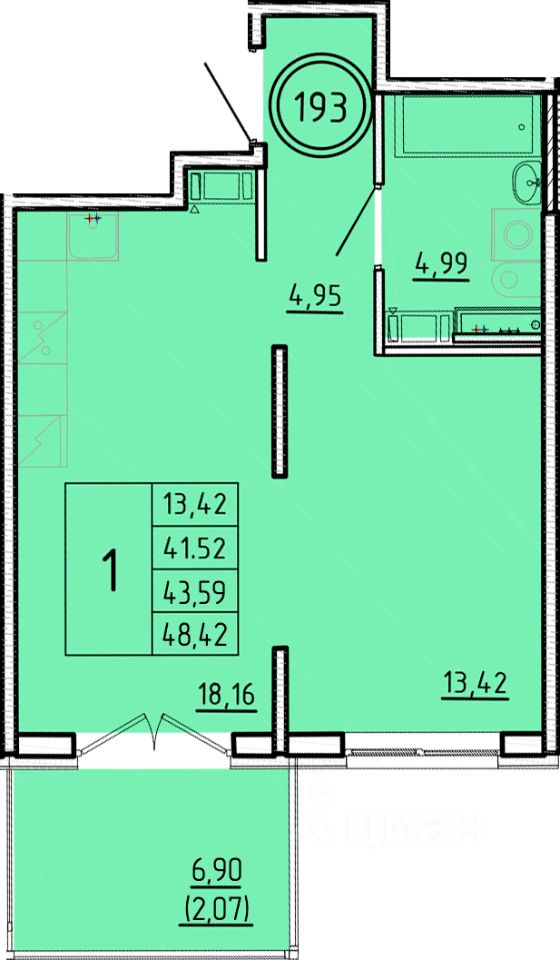 Общая площадь41,52 м²