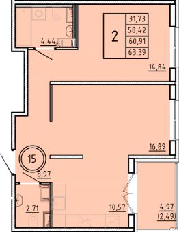 58,42 м²
