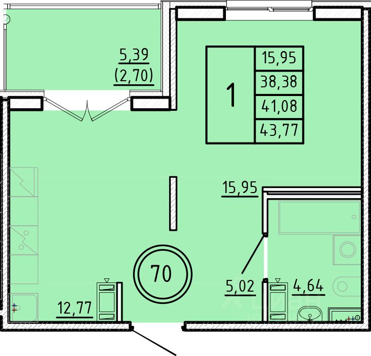 Общая площадь38,38 м²