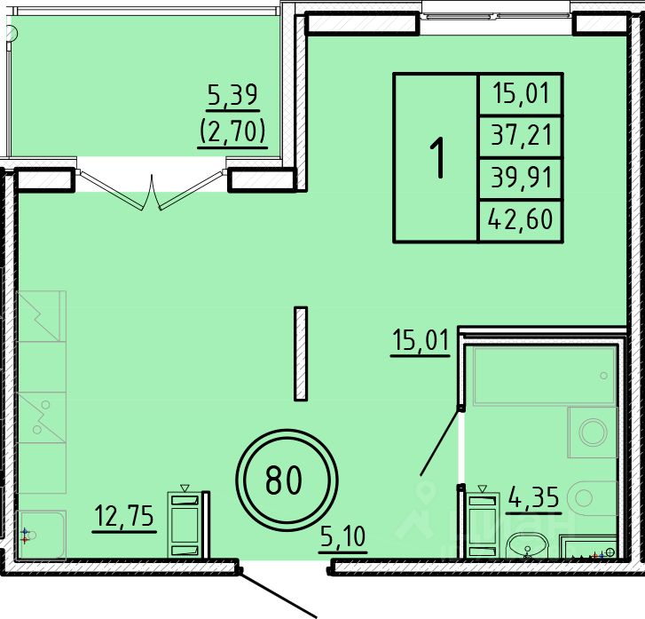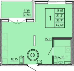 Общая площадь37,21 м²