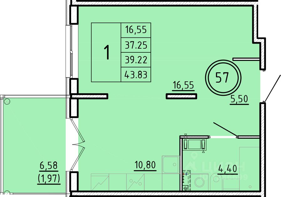 Жилая площадь16,6 м²