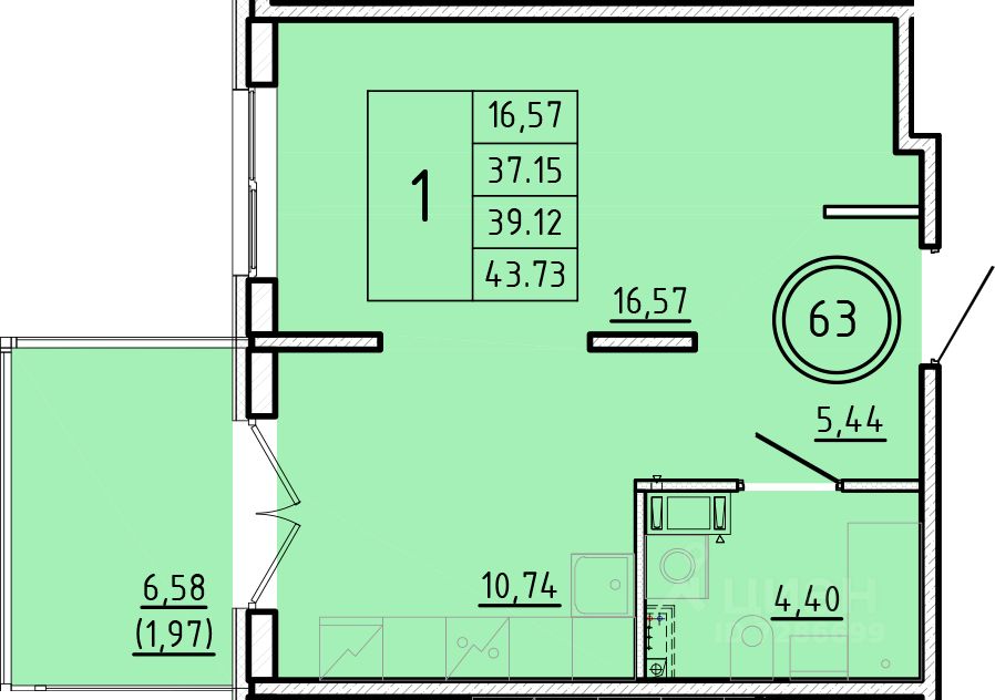 Жилая площадь16,6 м²