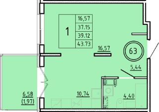Общая площадь37,25 м²
