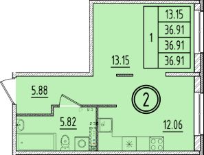 Общая площадь36,91 м²