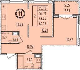 Общая площадь55,71 м²