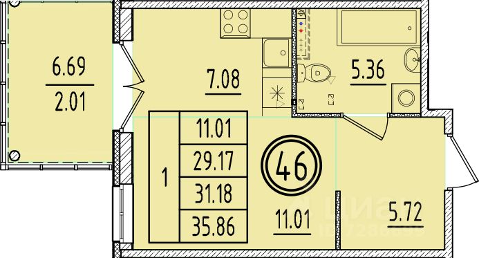 Общая площадь29,17 м²