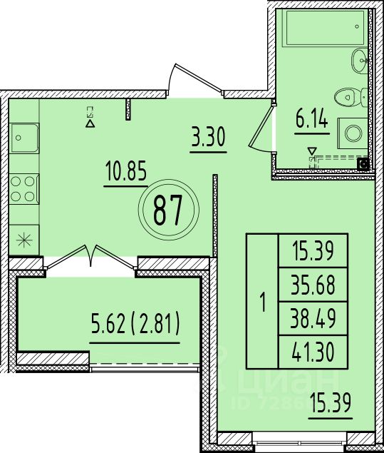 Общая площадь35,68 м²
