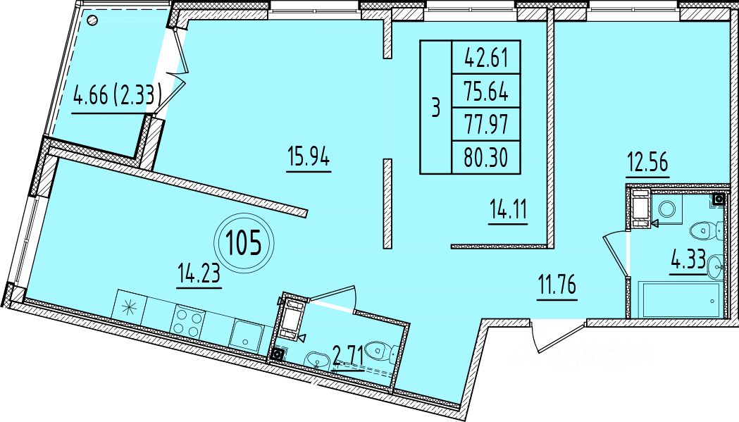 Общая площадь75,64 м²