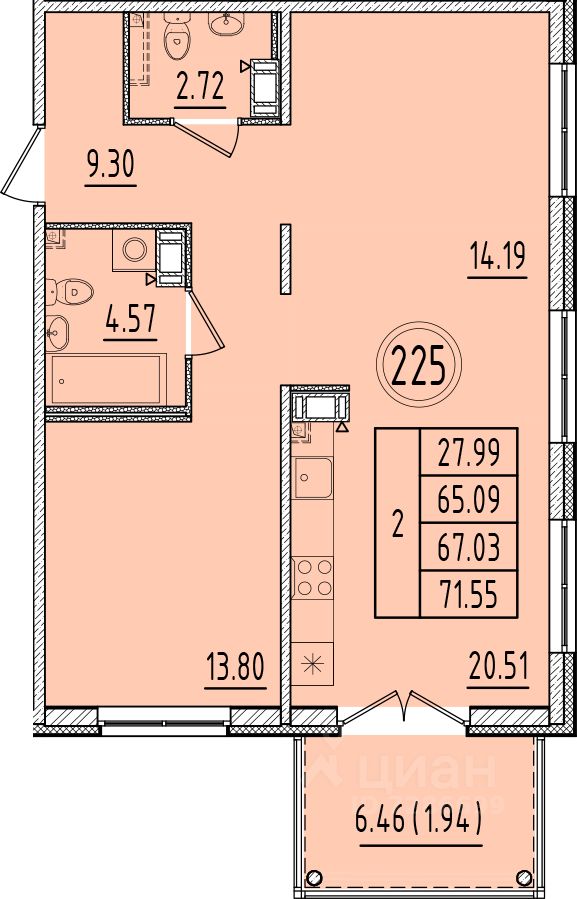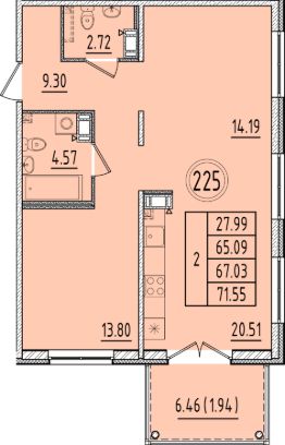 Общая площадь65,09 м²