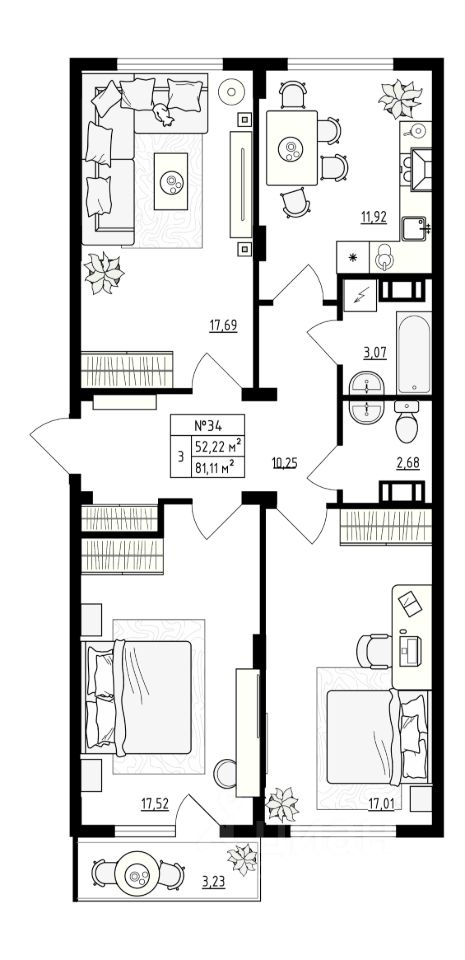 Продаётся 3-комнатная квартира в сданном доме (Сиреневая, 25к1 (Корпус 2)), срок сдачи: IV-кв. 2024, общей площадью 81.11 кв.м., на 4 этаже. В деревне Малое Верево есть все, что нужно для комфортной и спокойной жизни: рядом есть магазины, кафе, детские сады, школы и поликлиники. Ну, и конечно же, парковочные места для машин. А к моменту сдачи торгового центра - всё необходимое будет в шаговой доступности.