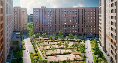 - На территории комплекса спроектированы игровые площадки для детей разных возрастов, спортивные и лаундж-зоны, а также коворкинг