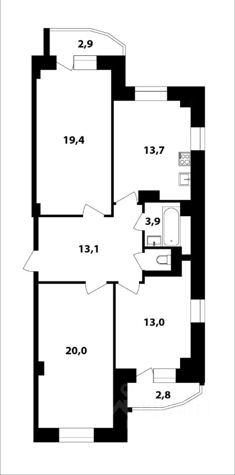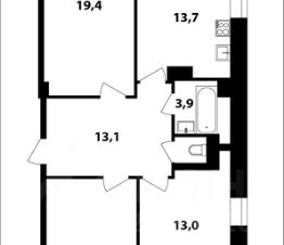 19,4 кв м - c выходом на балкон - 5.8 кв. м