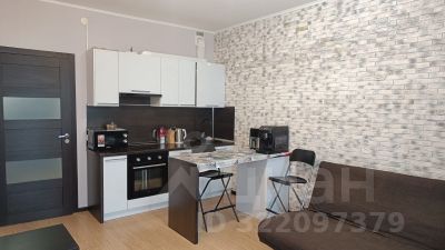 Продается уютная студия общей площадью 25.1 кв.м, жилая площадь 17.3 кв.м, площадь с учетом лоджии 26.5. Лоджия большая застекленная. Прекрасный вид в тихий красивый двор. Квартира с ремонтом. В кухонной зоне встроенная мебель, варочная панель, духовой шкаф, холодильник, обеденный стол по типу барной стойки, барные стулья.