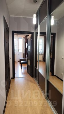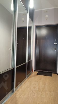 В прихожей большой вместительный шкаф-купе с зеркальными дверьми.