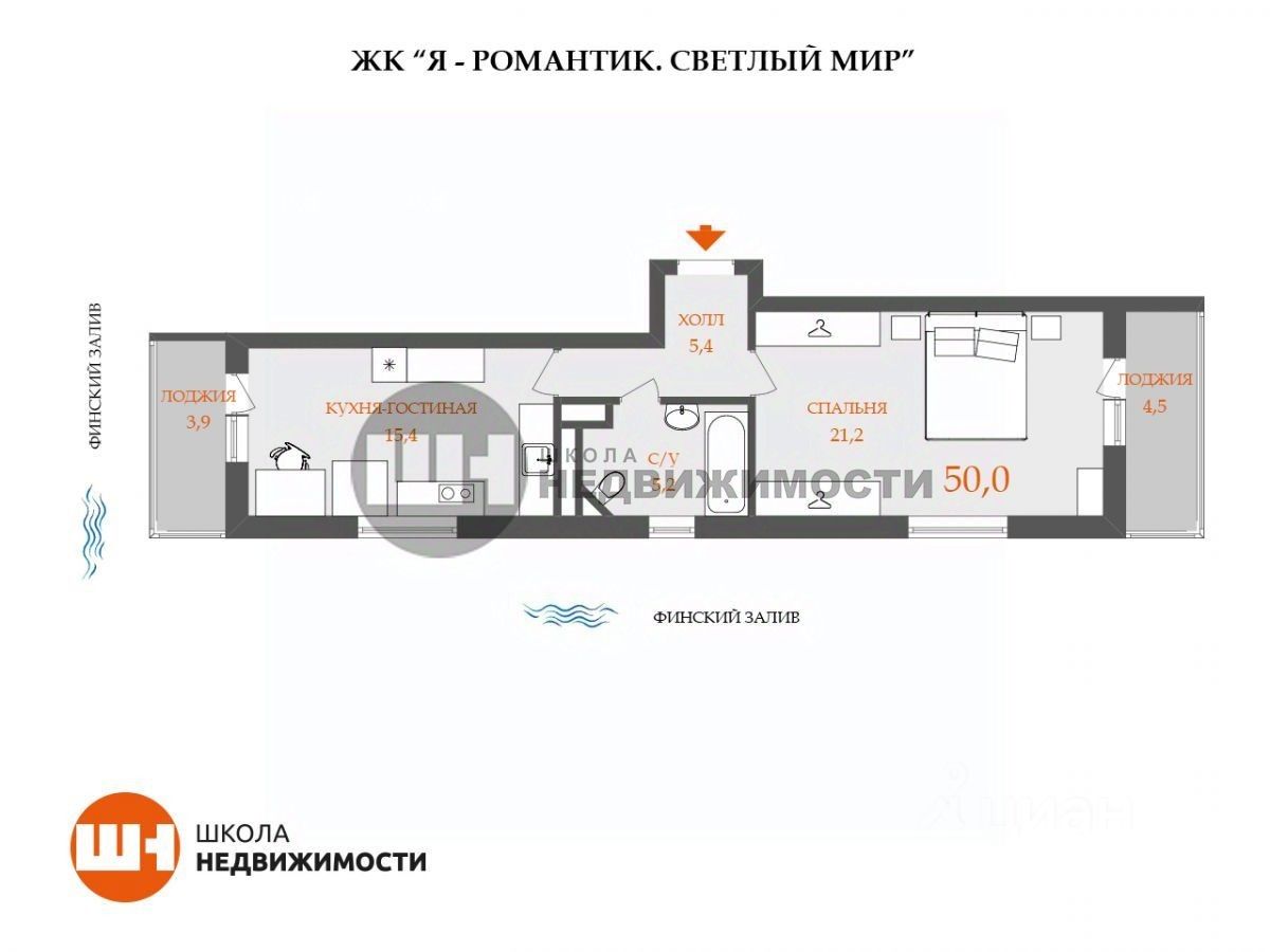 Мы продаём евро-двухкомнатную квартиру (не апартаменты!) на 12-м этаже в современном комплексе "Я Романтик" по адресу: г. Санкт-Петербург, Бульвар Александра Грина 3, стр. 1.