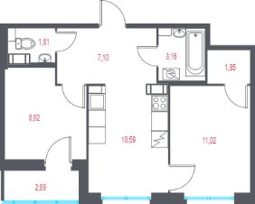Квартира 55 в корпусе 1 от застройщика в ЖК "Город-спутник Южный"