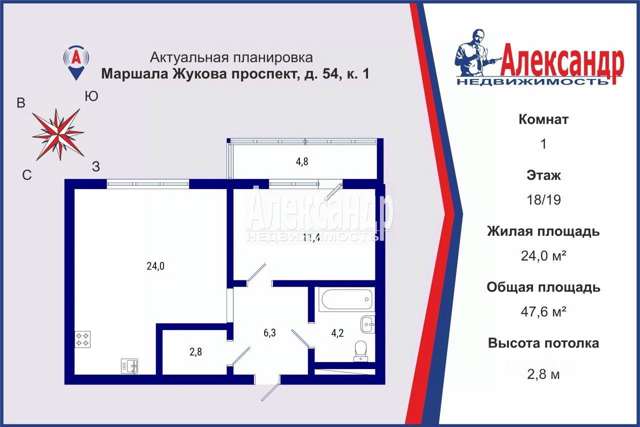 1704434 Отличная евро-двушка в ЖК "Полежаевский парк".
