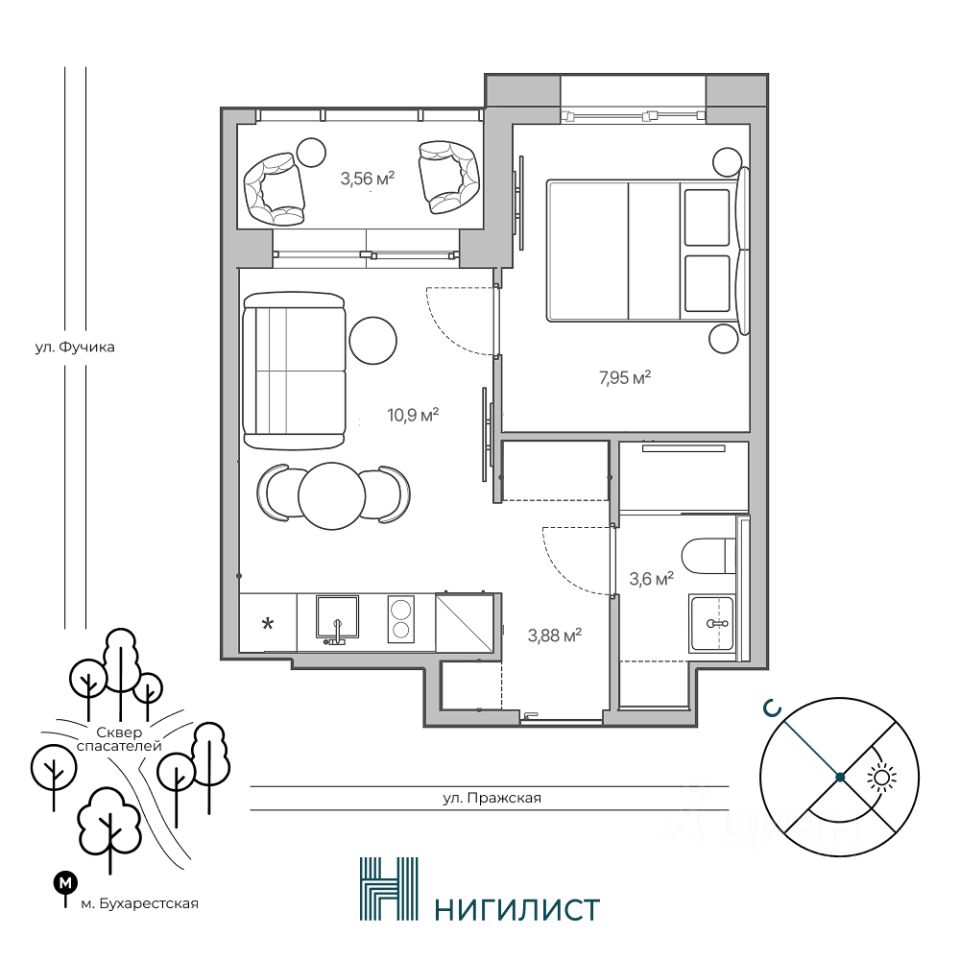 Продаётся 1-комнатная квартира в строящемся доме (Корпус 1), срок сдачи: I-кв. 2028, общей площадью 30.02 кв.м., на 2 этаже. Новый жилой дом от застройщика "СЗ БЛЭКСМИТ" расположен по адресу: Санкт-Петербург, Улица Фучика, д. 17, литера В.