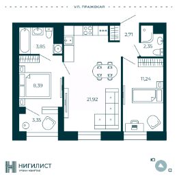 Продаётся 2-комнатная квартира в строящемся доме (Корпус 1), срок сдачи: I-кв. 2028, общей площадью 52.14 кв.м., на 4 этаже. Новый жилой дом от застройщика "СЗ БЛЭКСМИТ" расположен по адресу: Санкт-Петербург, Улица Фучика, д. 17, литера В.