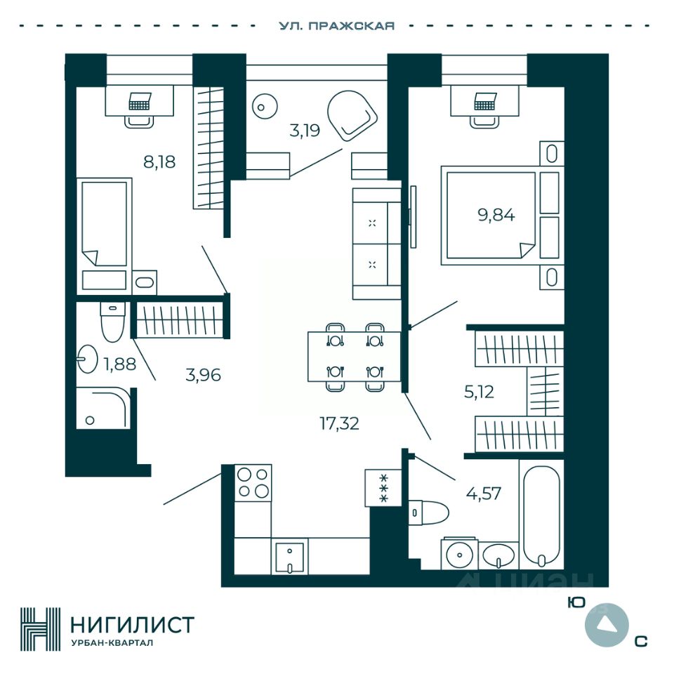 Продаётся 2-комнатная квартира в строящемся доме (Корпус 1), срок сдачи: I-кв. 2028, общей площадью 52.47 кв.м., на 4 этаже. Новый жилой дом от застройщика "СЗ БЛЭКСМИТ" расположен по адресу: Санкт-Петербург, Улица Фучика, д. 17, литера В.