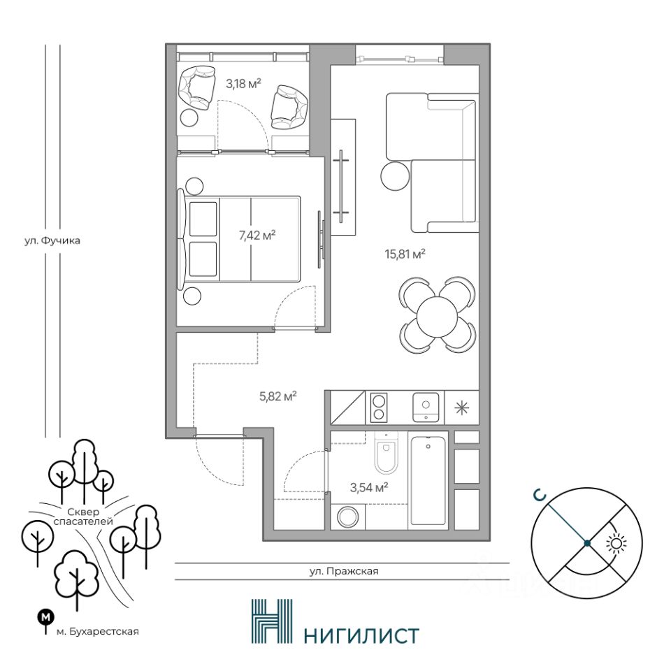 Продаётся 1-комнатная квартира в строящемся доме (Корпус 1), срок сдачи: I-кв. 2028, общей площадью 34.21 кв.м., на 5 этаже. Новый жилой дом от застройщика "СЗ БЛЭКСМИТ" расположен по адресу: Санкт-Петербург, Улица Фучика, д. 17, литера В.