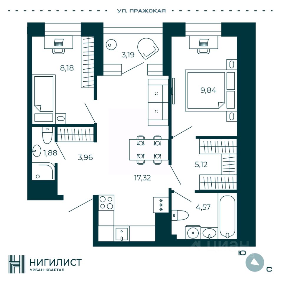 Продаётся 2-комнатная квартира в строящемся доме (Корпус 1), срок сдачи: I-кв. 2028, общей площадью 52.47 кв.м., на 5 этаже. Новый жилой дом от застройщика "СЗ БЛЭКСМИТ" расположен по адресу: Санкт-Петербург, Улица Фучика, д. 17, литера В.