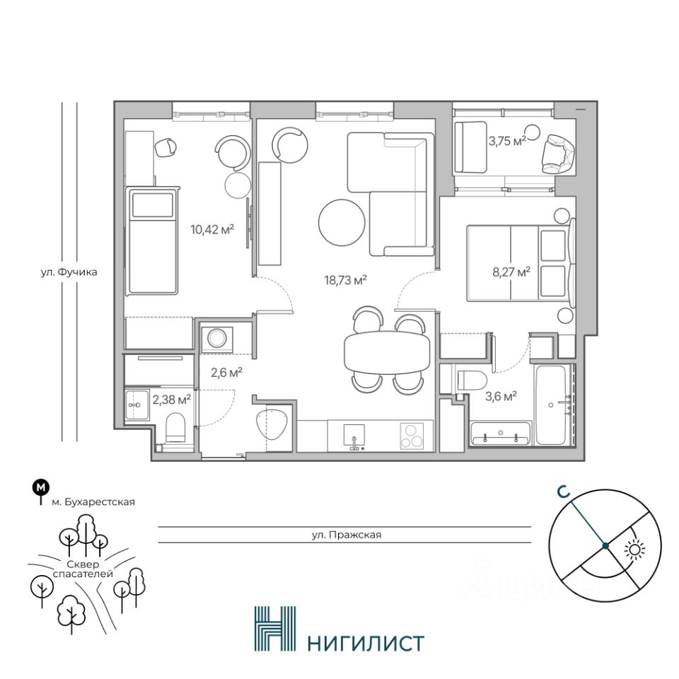 Продаётся 2-комнатная квартира в строящемся доме (Корпус 1), срок сдачи: I-кв. 2028, общей площадью 47.38 кв.м., на 6 этаже. Новый жилой дом от застройщика "СЗ БЛЭКСМИТ" расположен по адресу: Санкт-Петербург, Улица Фучика, д. 17, литера В.