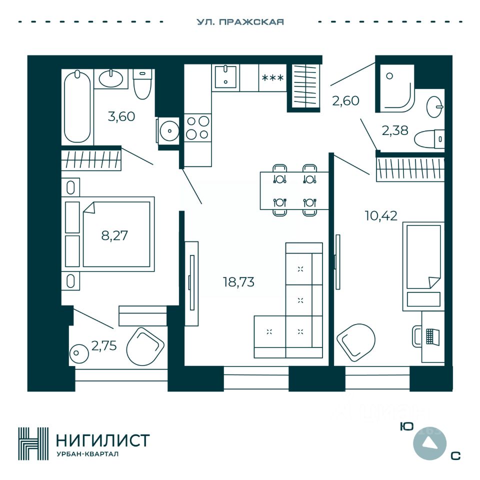 Продаётся 2-комнатная квартира в строящемся доме (Корпус 1), срок сдачи: I-кв. 2028, общей площадью 47.38 кв.м., на 11 этаже. Новый жилой дом от застройщика "СЗ БЛЭКСМИТ" расположен по адресу: Санкт-Петербург, Улица Фучика, д. 17, литера В.