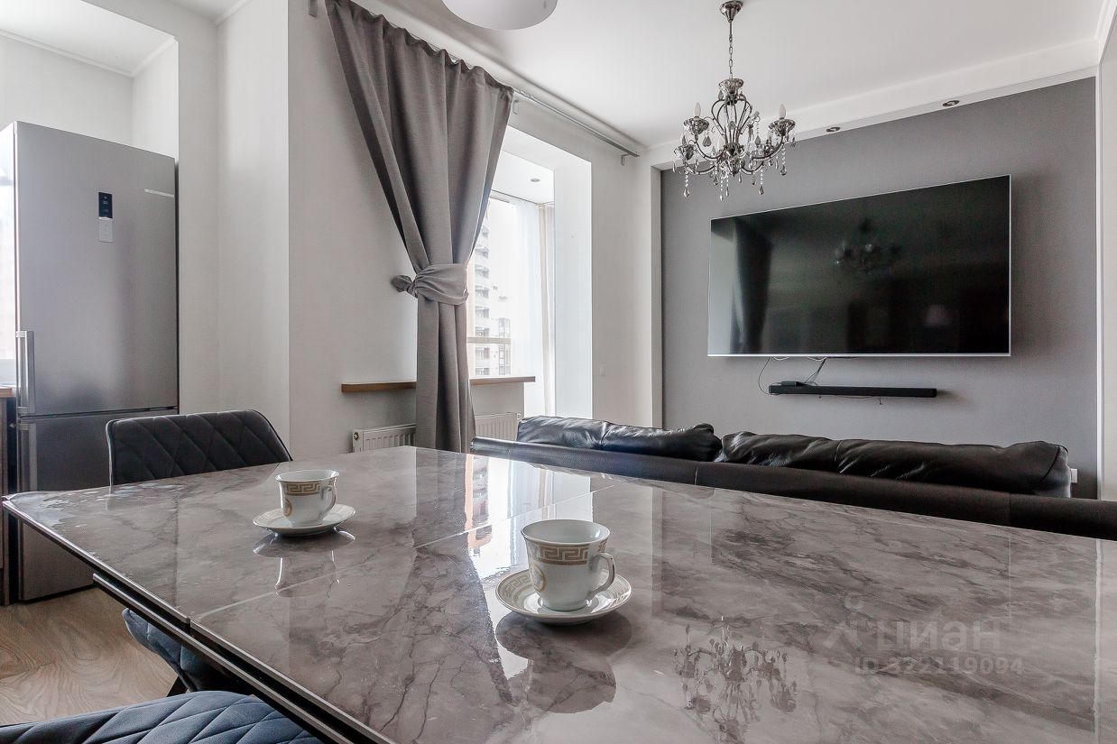 Данная квартира имеет просторный коридор , который переходит в кухню-гостинную , на кухни имеется вся необходимая кухонная мебель и техника ( встраиваемая посудомоечная машина, микроволновая печь, духовой шкаф и отдельно стоящий холодильник) , мойка расположена на против окна с прекрасным видом на школу и детский садик. Уникальная планировка грамотно разделяет кухню и гостинную , что позволяет и готовить и отдыхать всей семье вместе , к гостинной присоединена лоджия с панорамным остеклением , что делаем квартиру очень светлой, окна выходят не на солнечную сторону. При необходимости из гостинной можно сделать изолированную третью комнату.