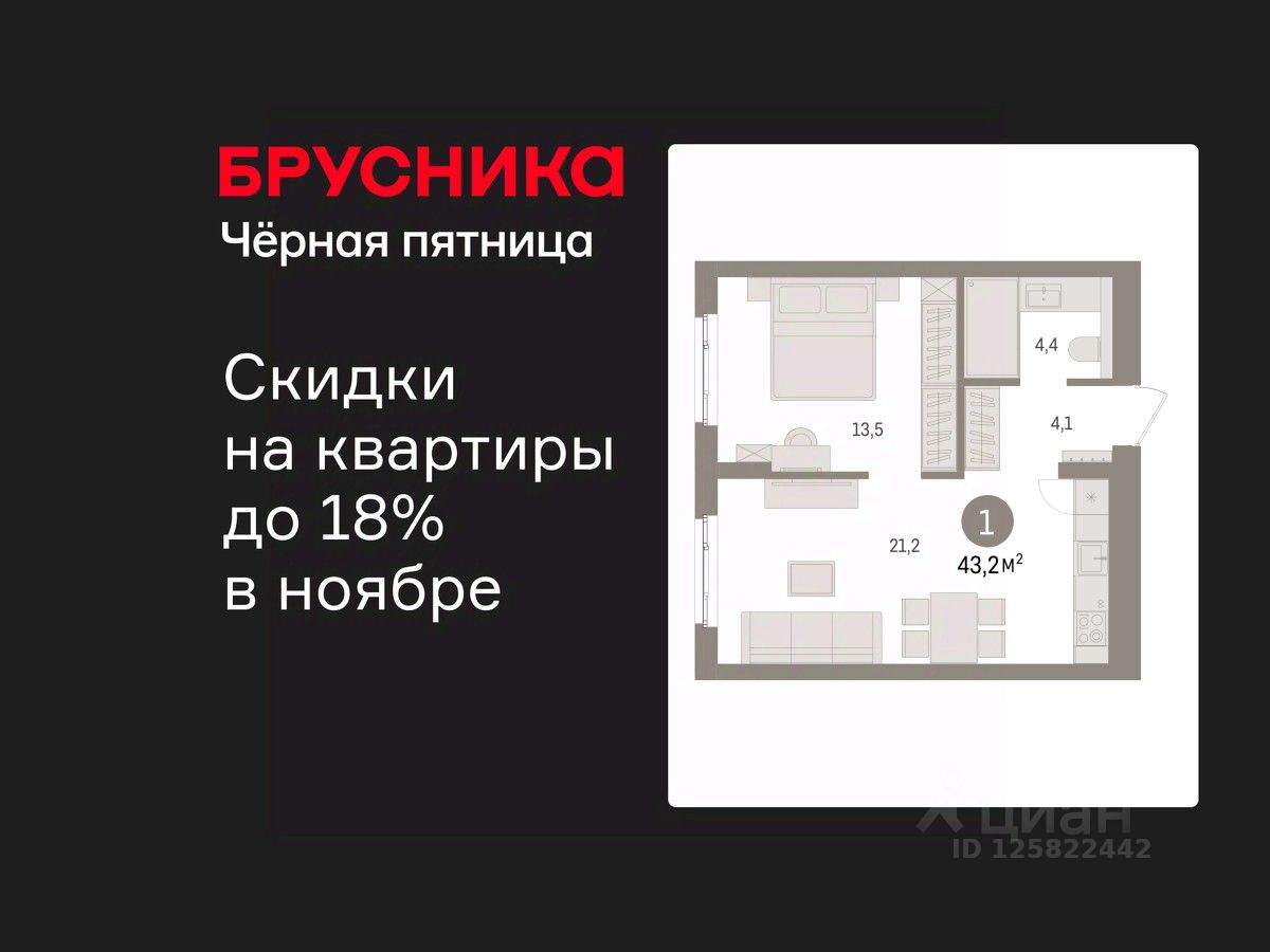 Продается 1-комн. квартира с предчистовой отделкой в ЖК "Брусника в Новоселье" на 4 этаже. Общая площадь: 43.15 кв.м., жилая: 13.5 кв.м., площадь просторной кухни-столовой: 21.2 кв.м. Все окна выходят на одну сторону. В квартире один совмещенный санузел. Высота потолков 2.7 м.