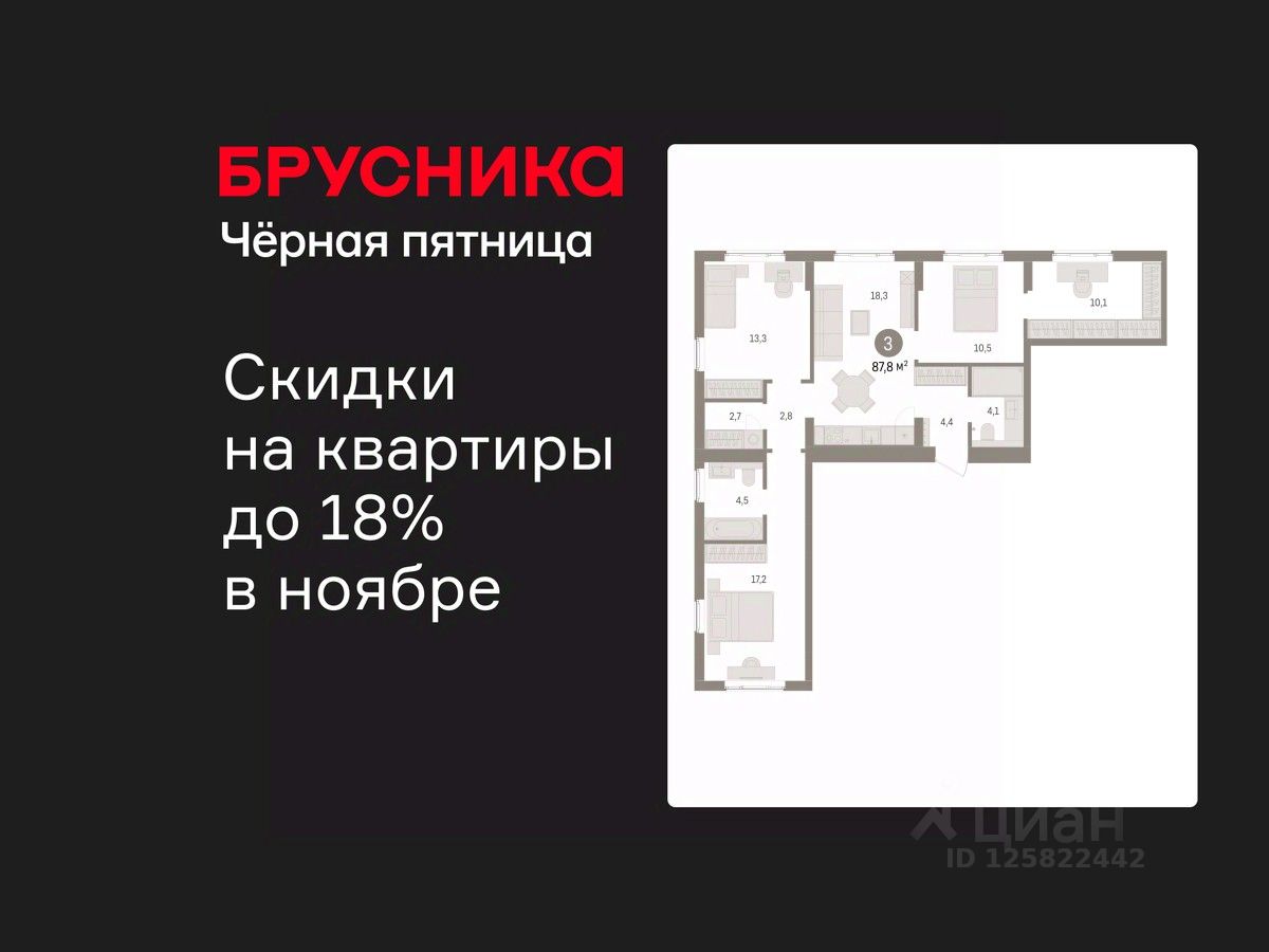 Продается 3-комн. квартира от застройщика с предчистовой отделкой в ЖК "Брусника в Новоселье" на 3 этаже. Общая площадь: 87.84 кв.м. Высота потолков 2.7 м.