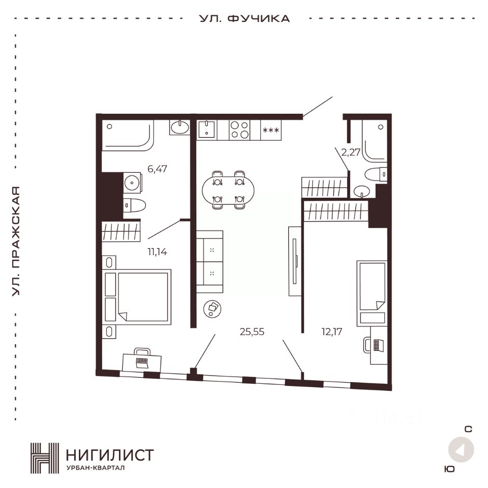 Продаётся 2-комнатная квартира в строящемся доме (Корпус 2), срок сдачи: I-кв. 2028, общей площадью 57.6 кв.м., на 9 этаже. Новый жилой дом от застройщика "СЗ БЛЭКСМИТ" расположен по адресу: Санкт-Петербург, Улица Фучика, д. 17, литера В.