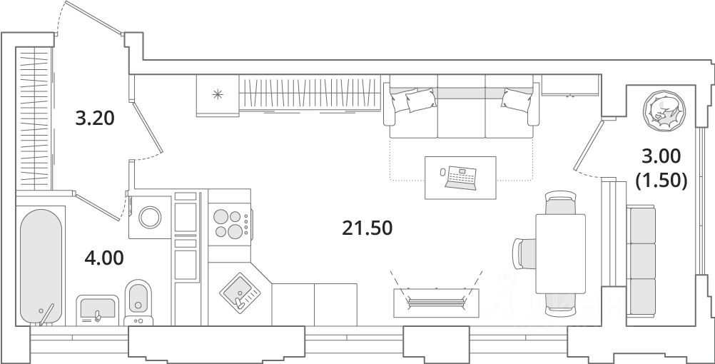 Студия от 21 м²