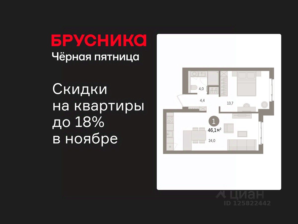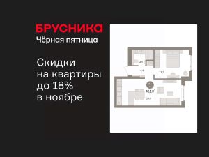 Продается 1-комн. квартира с предчистовой отделкой в ЖК "Брусника в Новоселье" на 3 этаже. Общая площадь: 46.1 кв.м. Высота потолков 2.7 м.