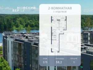 Прoдaeтся 2-комнатная квартира на 2 этаже 5-этажного дома в ЖК "Невский берег". Общая площадь квартиры составляет 58,20 кв.м. Номер квартиры 10.